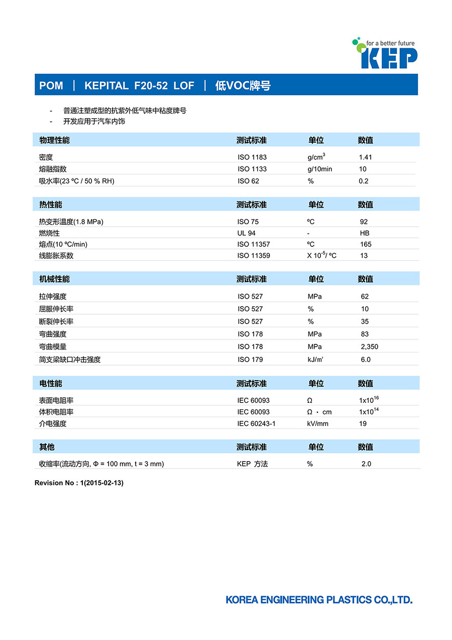 - 普通注塑成型的抗紫外低氣味中粘度牌號- 開發(fā)應(yīng)用于汽車內(nèi)飾