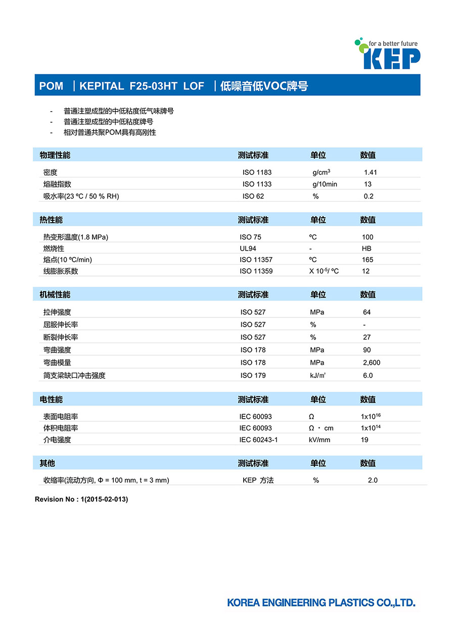 - 普通注塑成型的中低粘度低氣味牌號(hào)- 普通注塑成型的中低粘度牌號(hào)- 相對(duì)普通共聚POM具有高剛性