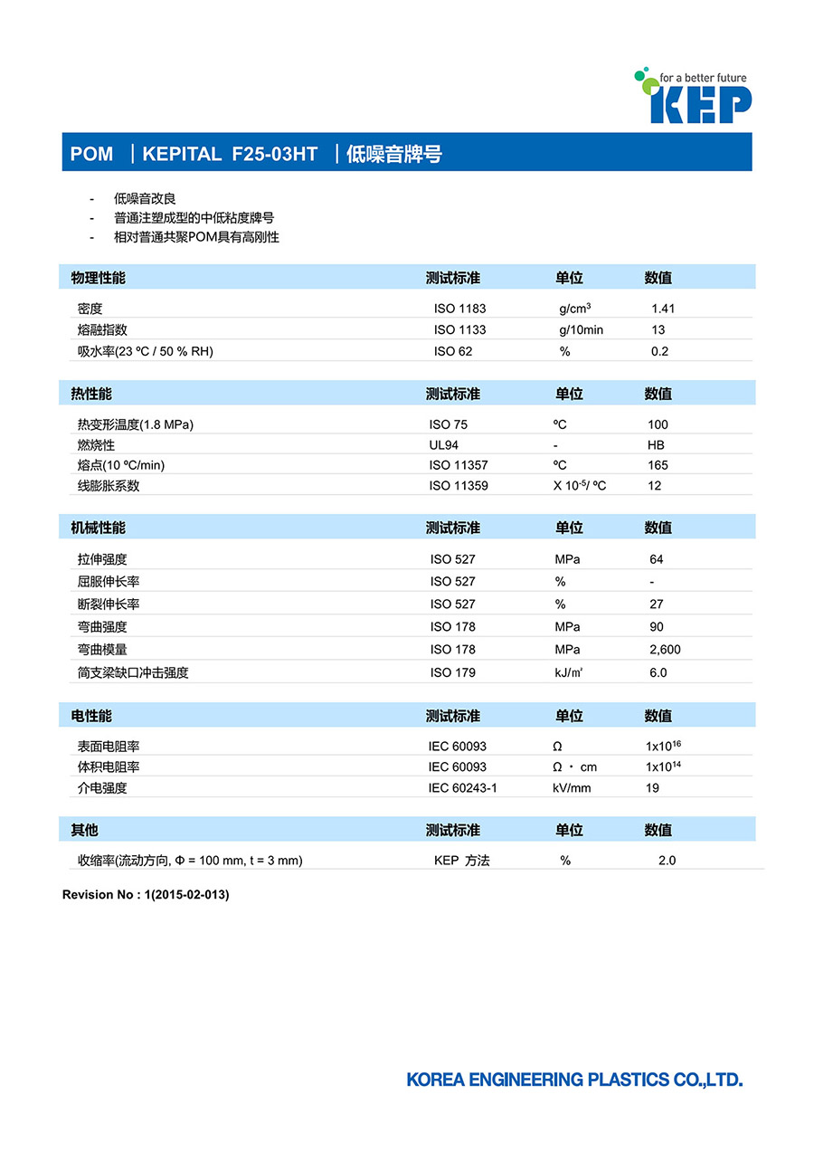 - 低噪音改良- 普通注塑成型的中低粘度牌號(hào)- 相對(duì)普通共聚POM具有高剛性